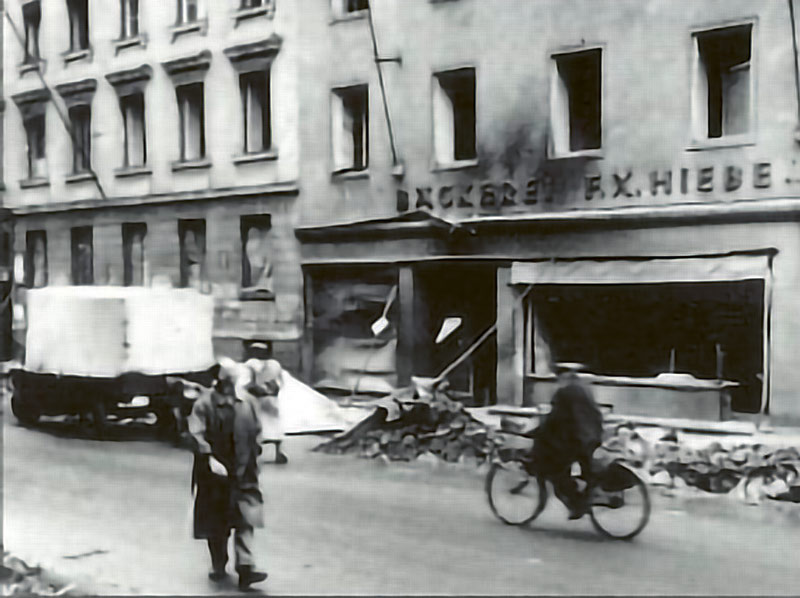 • Zerstörung der Bäckerei Hieber in München nach Kriegsende, 1945